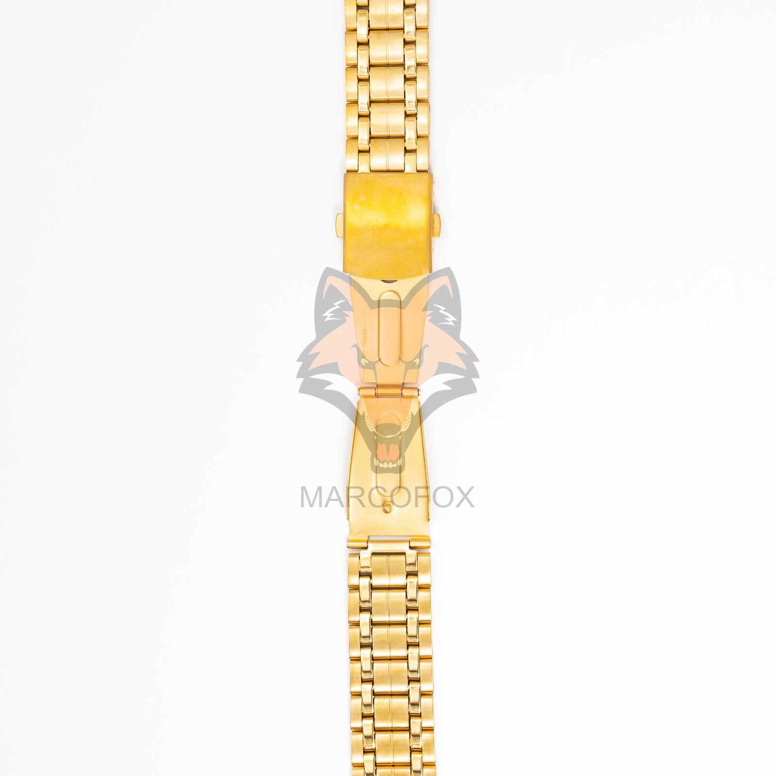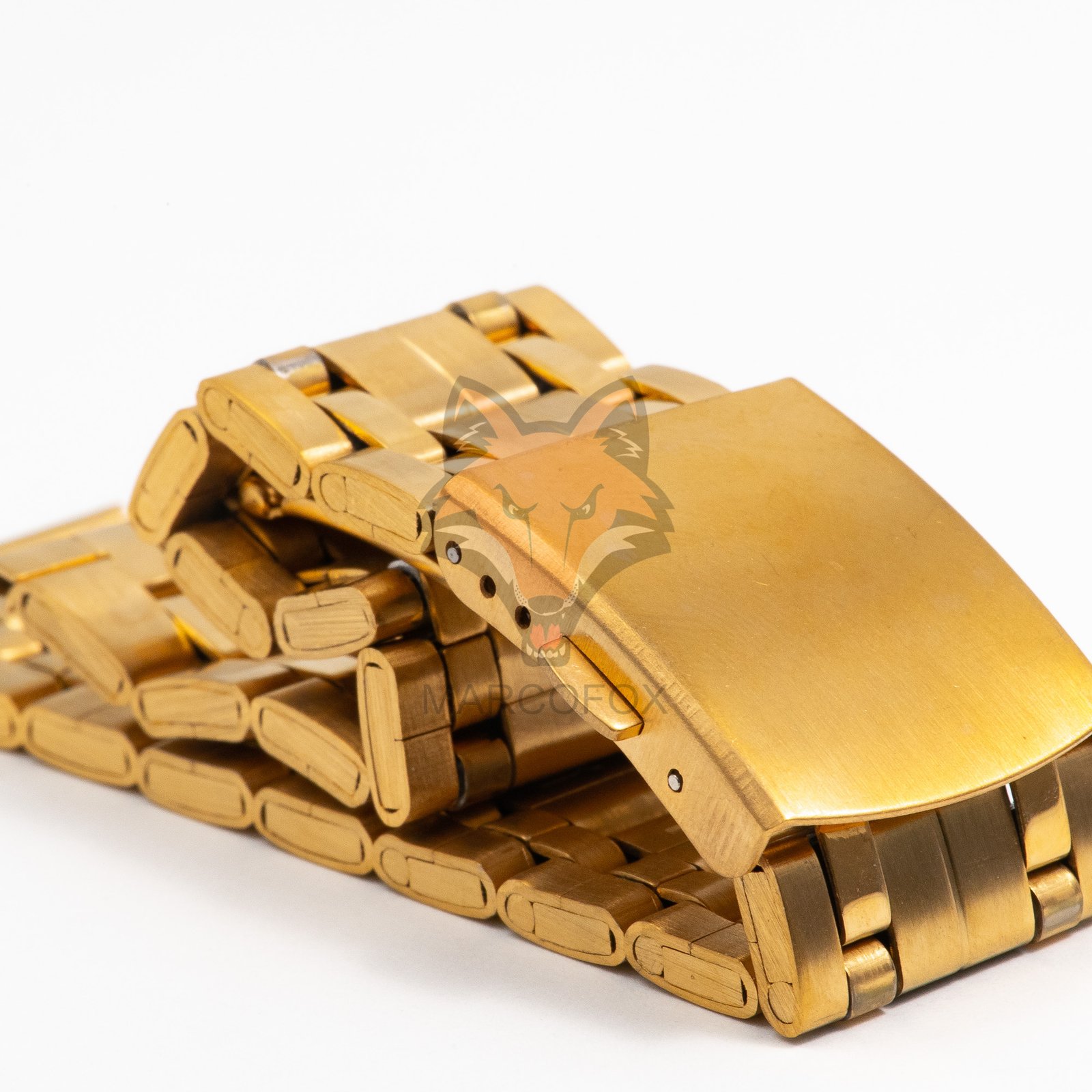 Pulseira de meta reta no tamanho 22mm. Processo de banho IP. Não acompanha os pinos para prender na caixa do relógio.