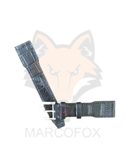 Pulseira de couro com fivela de aço.