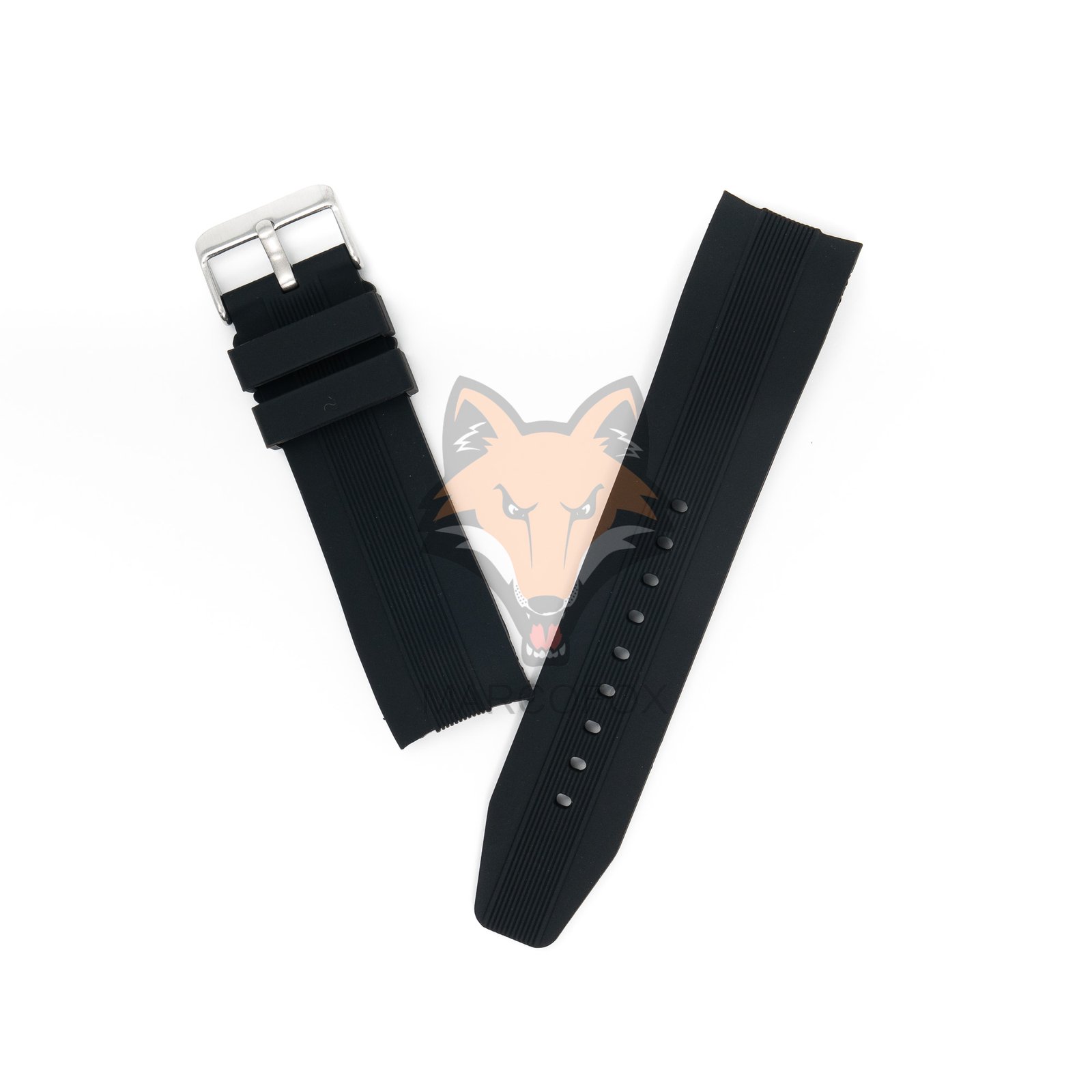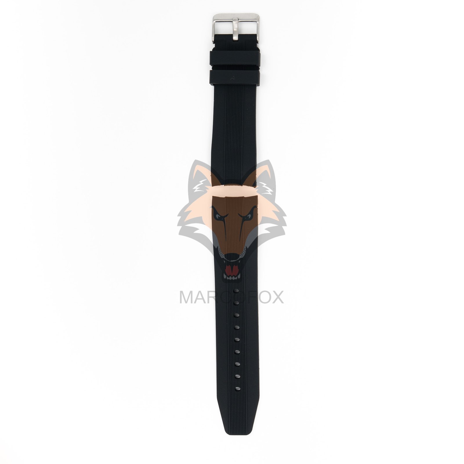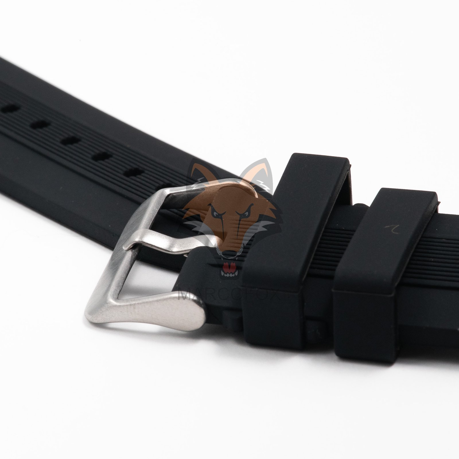 Pulseira de silicone com fivela de aço. Com dois furos para facilitar o encaixe na caixa do relógio